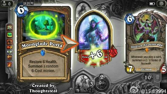 看下面的LOGO,是不是少了什么?下面的一行小字“魔兽英雄传”不见了!这是翅膀硬了,要脱魔(脱离魔兽世界)。脱离魔兽的背景框架然后干什么?加入守望先锋拓展包、暗黑破坏神拓展包、星际争霸拓展包等等,然后炉石就变成了《炉石传说:风暴英雄传》?
