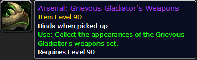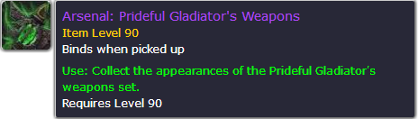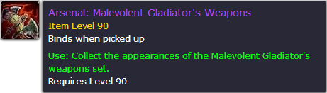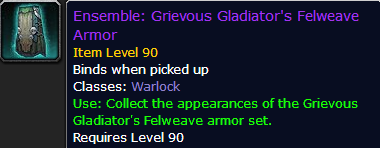 套装:恶孽角斗士的邪能织物护甲 (术士),使用获得恶孽角斗士全套外观。