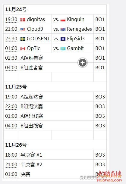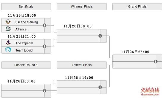 而从11月25日开始,8支战队将分为两组,采用GSL赛制,每组积分前2的队伍将晋级到淘汰赛中,去争夺5万美元的奖金池。
