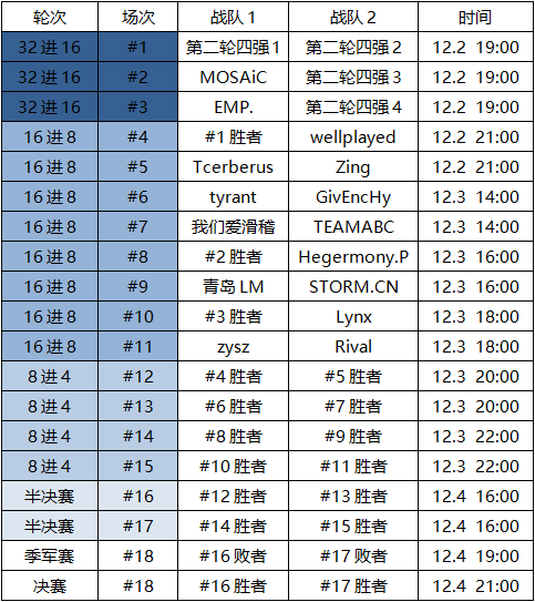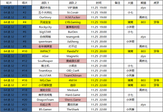 注:第二轮所有场次均为BO1单败,其中标黄场次为官方直播场次,标红队伍则绝对值得关注呦。