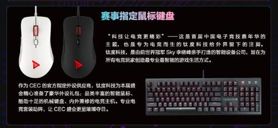 作为CEC的官方指定外设供应商,钛度科技为本届盛会精心准备了豪华外设礼包,品类丰富的智能鼠标、酷劲十足的机械键盘、内外兼修的电竞主机。专业电竞套装助阵,让CEC盛会更显璀璨夺目。