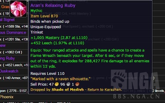 首先,这个饰品,毋庸置疑的是AOE爆炸,单体在衣服强化之后也很厉害,那么本贴通过对比不同装等的红玉伤害对比来揭示红玉在衣服强化之后爆炸的原因。(花环的伤害在你带上衣服时,数值上已经变动了,系数是1.3)。