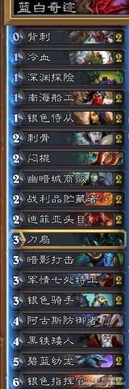 会长的本命职业是盗贼和猎人,这是一套一直被大家铭记在心的蓝白贼,节奏至上,控场抢脸,这套蓝白贼是会长八月份上传说的卡组。