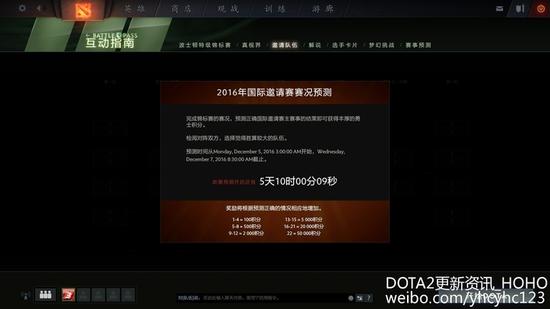 2016年11月30日,DOTA2客户端更新月60MB,本次更新是关于小绿本的波士顿特锦赛官方解说名单和主持人页面,并且关于比赛的预测已经开启了,如此残酷的赛制,大家功课容易做吗?