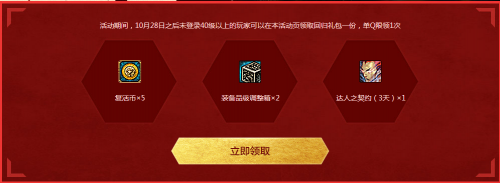 活动期间,10月28日之后未登录40级以上的玩家可以在本活动页领取回归礼包一份,单Q限领1次