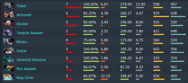 不过,脱离职业圈许久也意味着状态的缺失和英雄池的不足。这两点在xy-身上充分体现了出来。在加入Faceless之后的比赛中他仅有5个英雄使用超过3场,而其中食人魔魔法师更是使用了20场。虽然他收获了90%的可怕胜率,可这样的对某个版本热门英雄的过度使用很可能会影响队伍的BP。虽然从发挥上来看xy-依然具有职业选手的水平,但是尽快扩充自己的英雄池是他目前最需要努力的提升。