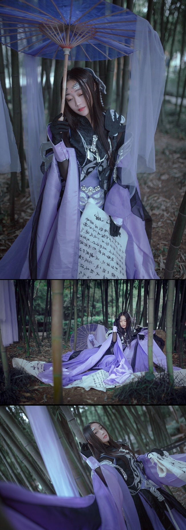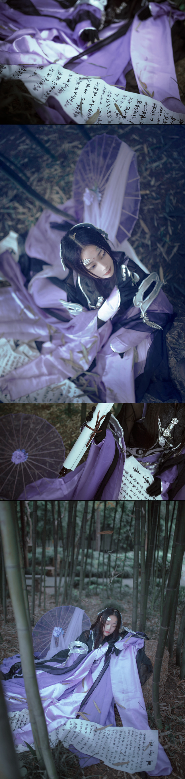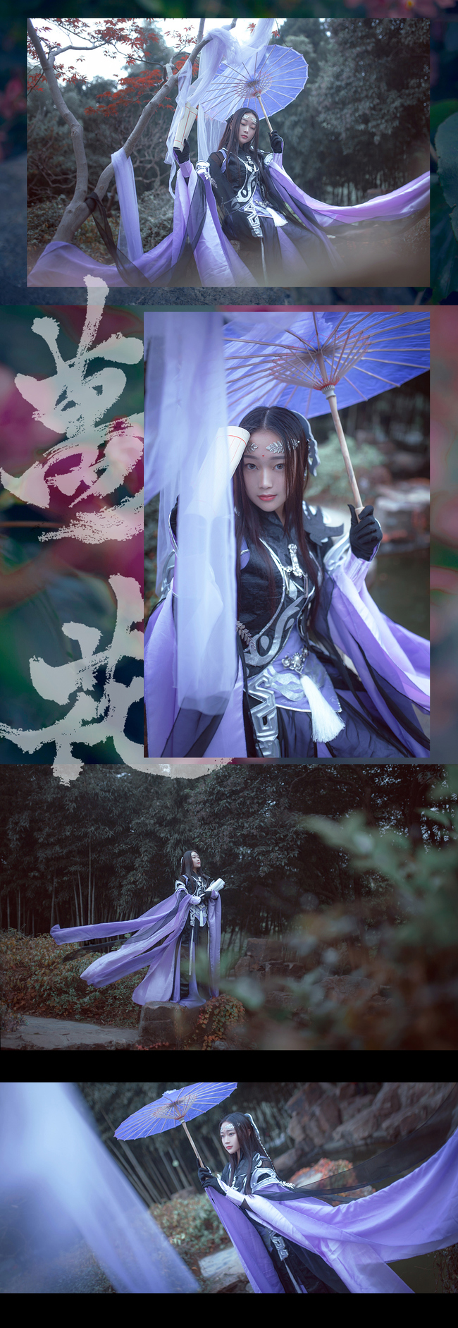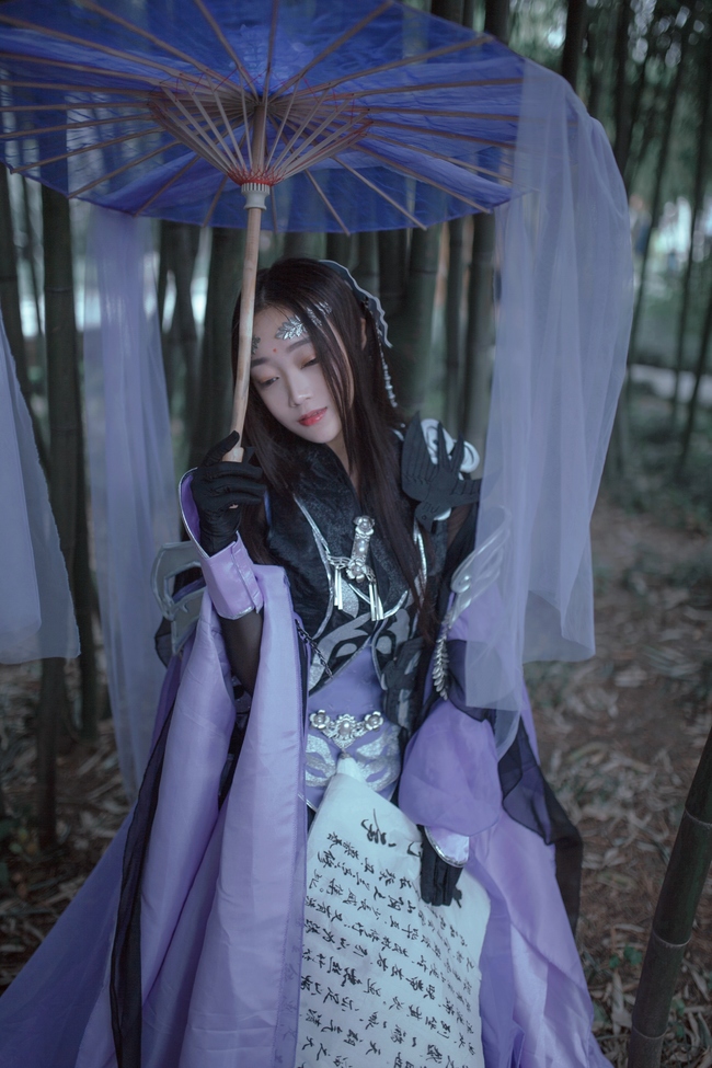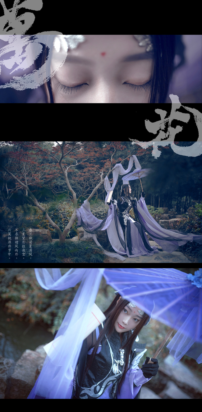 青丝柔,紫锦袍,素手丛间轻荡漾。