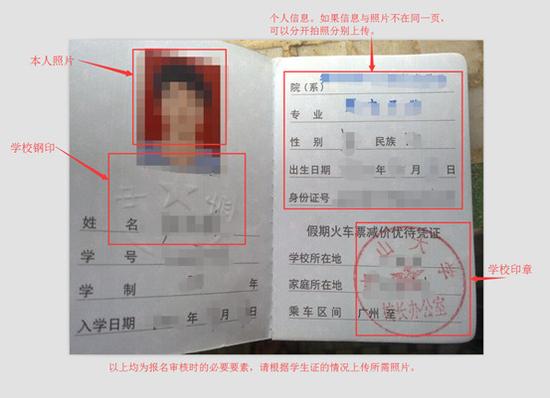 所以上传照片的时候记得用学信网的截图或者清晰的带有明确信息的学生证照片。如果所需信息不在学生证同一页上,可以拍两张照片分别上传。示例图如下:
