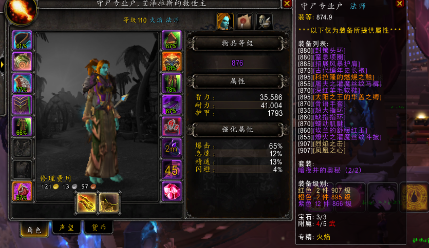 1.我个人认为火法暴击应该达到65才算是一名追求极致DPS的火法,打过60和65的感觉完全是不一样的。亲测60暴击火球纯暴击在70一下,而65可以恐怖的达到稳定78以上,想想多瞬发暴击的炎爆的收益!多瞬发炎爆以为着更大的几率出现护腕BUFF!