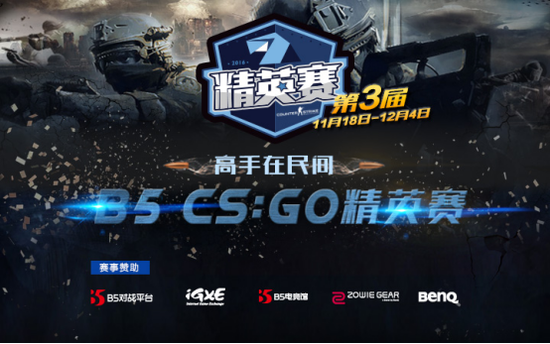 中国CS:GO精英赛是由B5对战平台主办、EL赛事组织承办的纯民间CS:GO赛事,禁止职业俱乐部及现役职业以任何形式参赛。首届精英赛创办于2016年4月,至今已举行到第三届,赛事已覆盖中国大陆及港澳台地区,截止目前已有超过百支战队参与比赛。中国CS:GO精英赛是纯民间队伍之间互相交流、展现实力的最佳舞台。第三届中国CS:GO精英赛专题页地址: //www.b5csgo.com/event/jys3