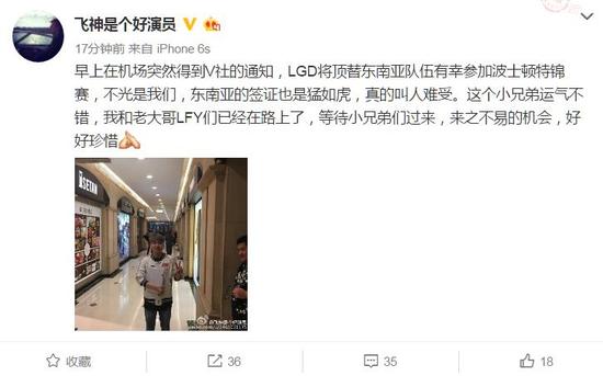 波士顿特锦赛即将开赛,参赛的中国战队已经陆续启程。今天下午LGD俱乐部副总大飞突然发出一条微博,说刚刚接到V社通知,LGD顶替东南亚战队加波士顿特锦赛。
