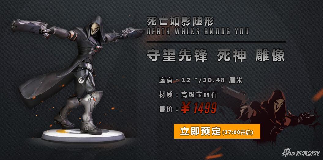 新浪游戏讯 12月2日消息,《守望先锋》死神雕像手办今日17:00在网易暴雪周边商城独家开放预售,售价为1499元。暴雪在几日前正式公布了这款死神手办,售价为150美元(约合人民币1032元),国内定价对比来看贵了不少。
