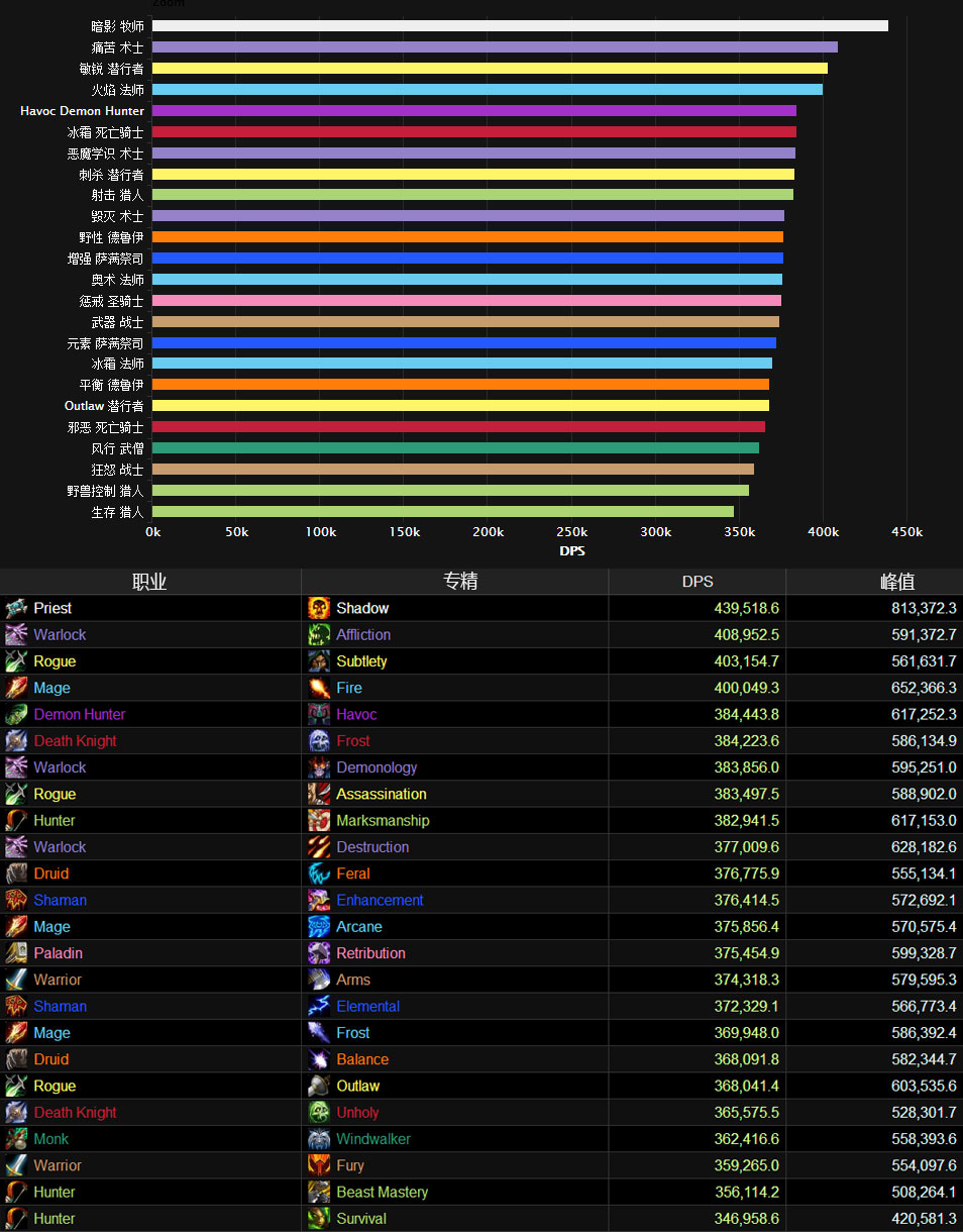 一图流:翡翠全职业DPS排行 贼法术牧稳居第一集团,此数据来自WCL大数据流。