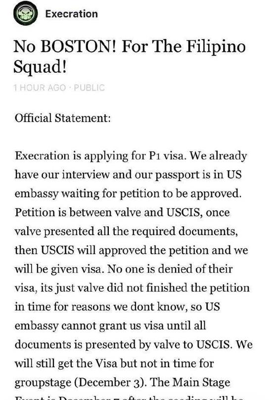答案很简单明了,Xctn签证是可以过的,但是V社迟迟不给发资料导致签证延误,随后V社把名额给了LGD。申请的是p1运动员签证,Ti6的时候他们就是这个签证但是过期了,因为p1只会给比赛日那么长的时间,比赛结束就要回国。