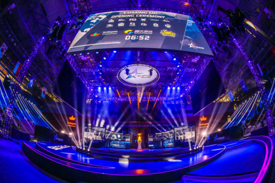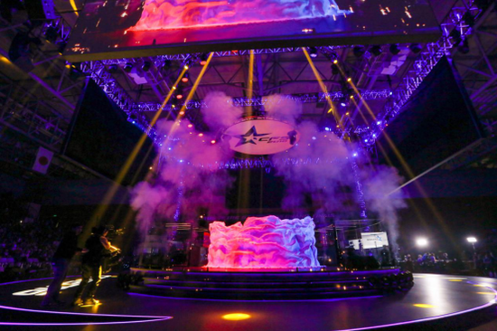 不仅如此,现场舞台的搭建也独具匠心,颇具现代艺术之美。流光溢彩的灯光效果,搭配窗明几净的比赛房间,不仅营造出美轮美奂的舞台效果,也让观众得见各国选手们群情激荡的现场脸谱,电子竞技的热血澎拜莫过于是。