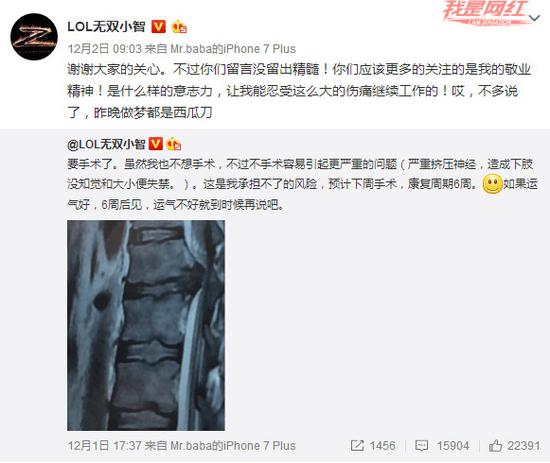 小智最近过得不怎么舒服得意,身体报恙,病疾缠身,据个人微博透漏,由于腰部问题,下周必须得以手术,6周以后才能以下床,看来可怜的小智同学要在病床上度过圣诞、元旦,跨新年。
