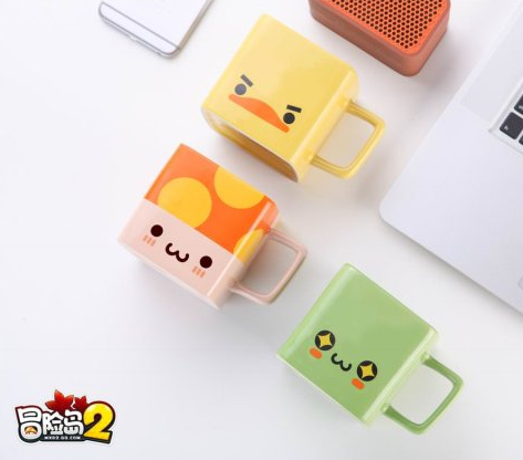 此外,《冒险岛2》推出三款马克杯,材质均为陶瓷,而在外形设计为正方体,迎合了游戏“方块世界”的特色。还有配套的PVC杯垫,与马克杯相呼应。