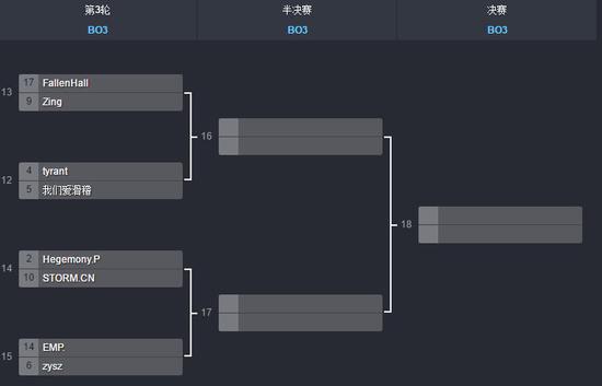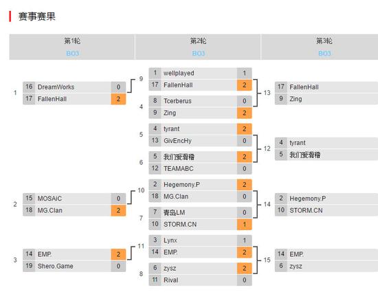 Hegemony.P是一只刚组建不久的西安队伍,不过H.P阵中有着两位前NEW4的大将moki和BlackMamba,在首战告捷后H.P俨然成为了本届精英赛的最大夺冠热门。Zing战队是一支来自上海的民间战队,他们对这次精英赛相当的重视,在赛前特地五人共同前往上海的B5电竞馆进行比赛,结果表明电竞馆确实对竞技水平有着绝对加成,他们以2-0的总比分击败Tcerberus顺利过关。剩下的晋级队伍还有tyrant、STORM.CN、zysz也都是老牌的民间队伍,队伍中拥有着uki ,8ball1等多位知名选手,实力高深莫测。