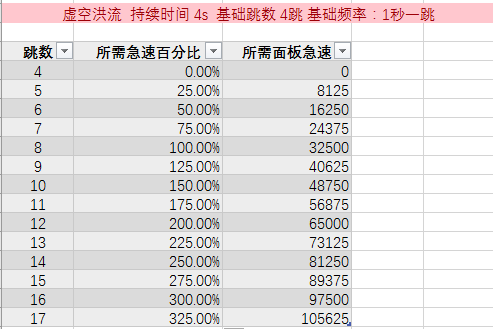 虚空洪流 持续时间4s 基础跳数: 1s/Tick。