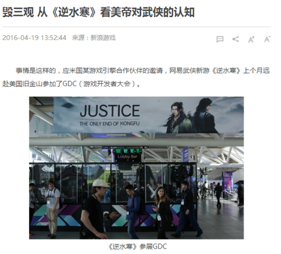 虽然网易没有正式发布过消息。但是各种小道消息都在传,网易要在“GDC2016”上发布逆水寒演示视频。讲真,小编听到这些消息的时候还很是期待。谁知道等GDC结束了,只看到有海报挂出来,但视频的影子都没看见。说好的演示视频呢?眼巴巴期待着视频的小编这叫一个失望啊。