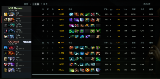 第二局MVP继续拿出蚂蚁只不过这次让QO来操刀使用,OG这边则是久违的拿出术士搭配卡尔恐怖利刃双核的阵容。前期已经是MVP打的非常主动,强势的对线跟积极的游走让MVP在前期依然取得了一些优势。可又是因为阵容原因,MVP这边白虎加屠夫的双“随缘”英雄,当OG这边卡尔以及TB成型后团战显得非常无力。跟第一局的剧本一样MVP高开低走再次输掉第二局。