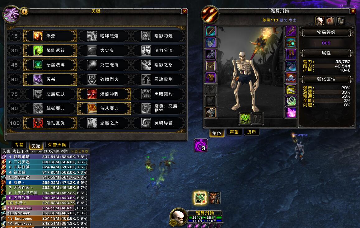 天赋:爆燃、熵能反转、恶魔法阵、灭杀、爆燃冲刺、侍从魔典、浩劫复仇。