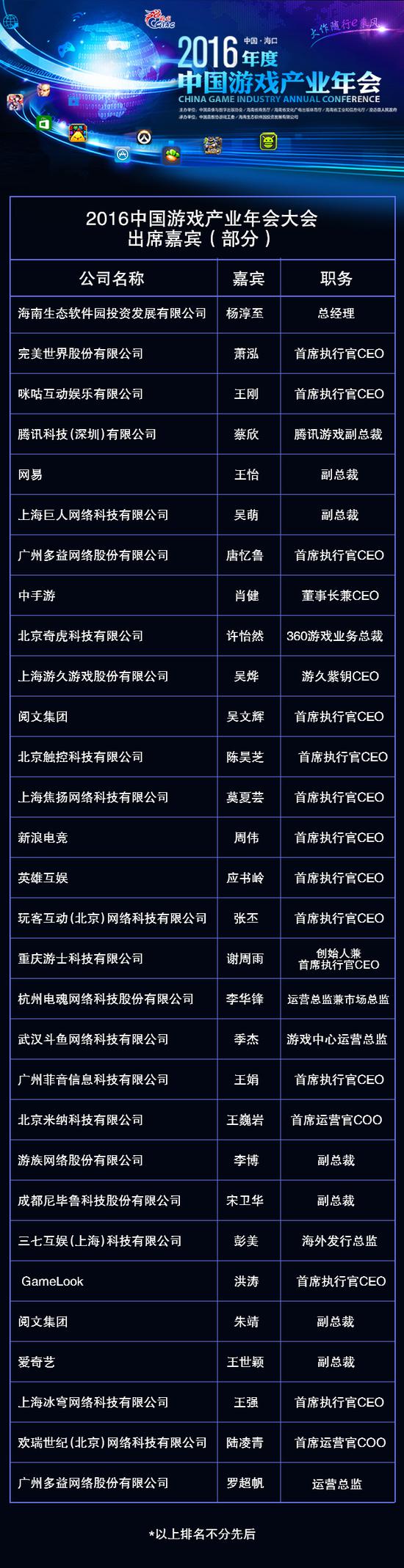 同时,参会嘉宾将围绕“游戏国际化”、“电竞黄金时代”、“移动游戏未来”等议题展开对话,共同回顾过去一年大事记,展望新一年行业变化。