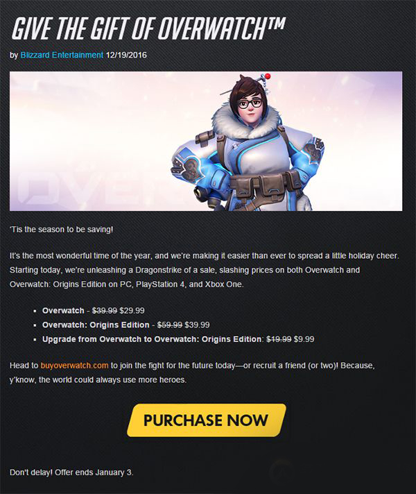 ●《守望先锋》:从39.99降至29.99美元。