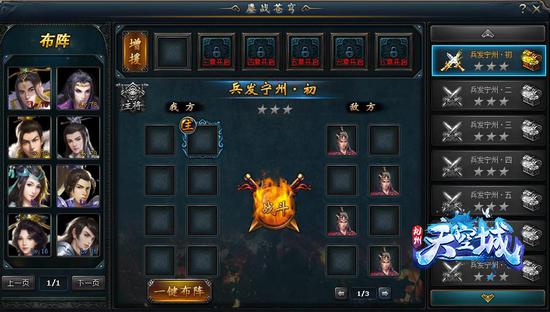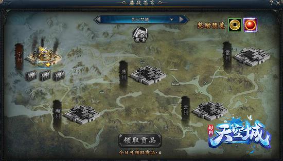 鏖战苍穹是取得铜钱和突破丹的主要方式,进入主介面后会显示了当前章节与相应的城池,城池上标注有当前星数与最大星数。只要获得胜利达到指定星数,便有每日贡品可收益,一劳永逸。