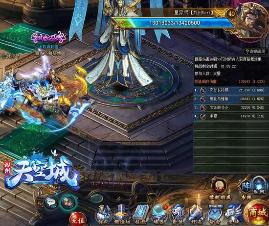进入BOSS副本后,右侧会显示当前伺服器给予BOSS伤害前十名的玩家,榜单下方也可以点击“擂鼓助威”来为所有玩家增加提升伤害的效果。另外BOSS战中也有设定目标伤害,首位达到目标的玩家,也可为所有玩家带来伤害提升的效果。