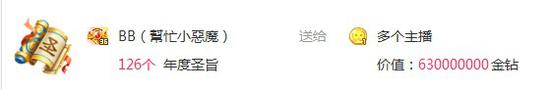 2016年年度盛典期间,要说有谁最红,红到已经超过大牌主播?那就非“BB”总莫属。半个月时间,单单圣旨就已经豪刷了126张。