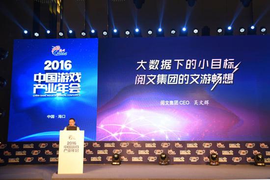 (上图:阅文集团CEO吴文辉在2016中国游戏产业年会上发表演讲)拥有国内最多网络文学IP的阅文集团不仅仅是行业的指引者,同时已积极参与到游戏制作等IP开发的具体环节中。在阅文游戏产品部门的主导下,《傲世九重天》《九天星辰诀》等众多网文IP改编游戏相继大放光彩,《斗破苍穹》、《全民仙逆》《武炼巅峰》《绝世唐门》等精品改编游戏也即将陆续登场。“这说明阅文集团一直坚持打造的IP泛娱乐战略正在释放出强大的能量,网络文学作为IP源头,与其他行业的联动尤其是游戏行业,已经取得1+1远大于2的可喜成果。”