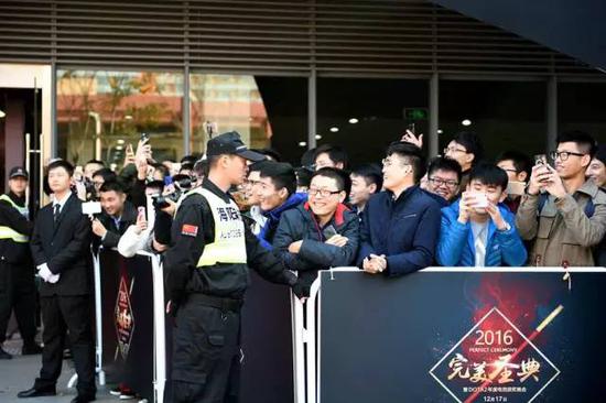 12.17日完美“圣”典如约到来,红毯嘉宾依次亮相复旦正大体育馆,走秀现场人气爆棚!热情的学生与玩家将活动现场围堵的水泄不通,争相举起相机给自己心目中的电竞偶像拍照留念!