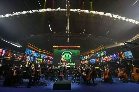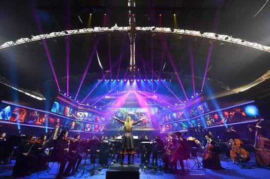 随着红毯嘉宾的入场,完美“圣”典也徐徐揭开了帷幕。正大体育馆的中心响起了激昂的DOTA2交响乐曲。VGL乐队作为一支屡屡献礼于DOTA2重大赛事的专业团队,对现场氛围的把控和调整也已达到炉火纯青的标准,音乐指挥官EímearNoone刚柔并济的指挥配上影院级DOTA2动画电影的播放,献给现场玩家一场极致的视听盛宴。