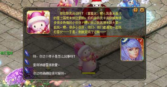 哎哟!原来是大伙在堆雪人,打雪仗!看着大伙玩得不亦乐乎的样子,你顺手就捡起一个晶莹透亮的雪球,恶作剧般地朝一个路人丢了过去——正中目标,手法不错!