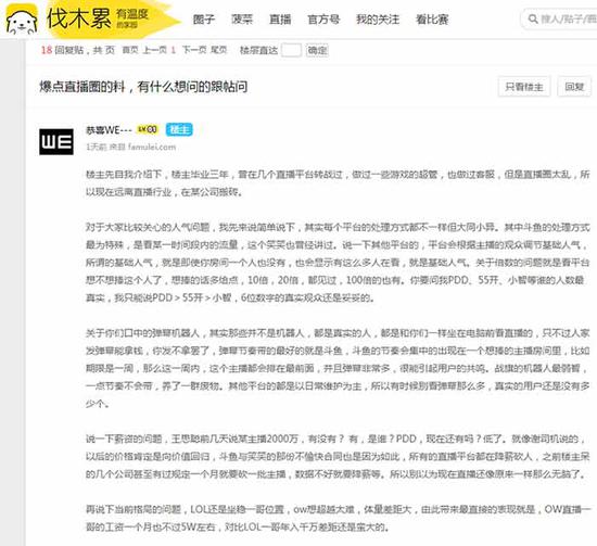近日,在某平台上有一位自称“曾在几个直播平台转战过,做过一些游戏的超管,也做过客服”的用户,发表了一篇名为“爆点直播圈的料,有什么想问的跟帖问”的帖子,引起广泛关注。