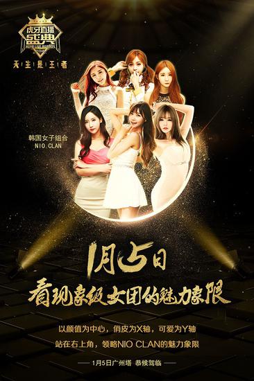 据悉,由崔瑟琪,徐珍儿,韩佳恩等6位青春靓丽,超人气美少女主播成员的韩国女子组合NIO CLAN将会在盛典现场带来劲爆热舞Cheer up,为年度王者欢呼助力,让现场来宾充分感受来自“韩国现象级女子主播团体”的王者魅力。