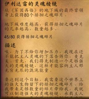 而伊利丹任务线,当前需要玩家完成伊利达雷的灵魂棱镜,需要玩家在地下城最终BOSS处收集80个徘徊之魂碎片,每周上限10个。如果从一开始每周坚持刷满的玩家应该在两周前就完成了。