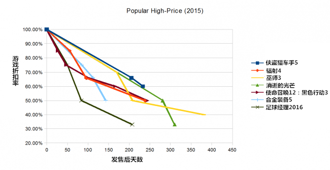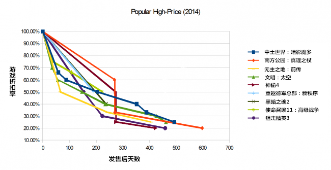 ▪ 而那些相对来说不那么热门的游戏,它们的降价速度会更快一些:对于那些定价为30美元(人民币206元)以上的游戏,那些最不成功的游戏要比最热销的游戏更快地打出60%的折扣。