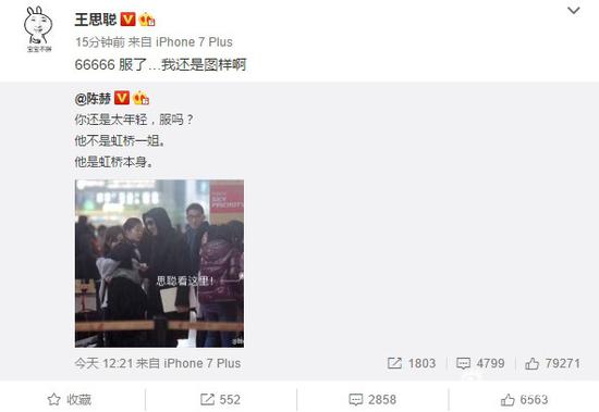 今日,@陈赫 在微博上晒出一张王思聪在虹桥机场的照片,附言:“你还是太年轻,服吗?她不是虹桥一姐。她是虹桥本身。”