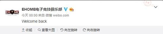 前一阵子因战队成绩不佳牵扯出队员塞拉和教练71矛盾的EHOME战队,在12月27日凌晨0点发出一条神秘的微博,微博配图只有人影,而博文也只有短短的“Welcome back(欢迎回归)”几个字。一方面说明塞拉离队可能成为事实,另一方面也让大家猜测回归的是谁?EHOME征战基辅春季特锦赛的阵容到底是怎样的呢?