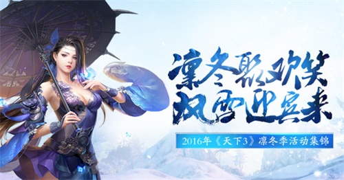 欢乐辞旧岁,金鸡报新春。2017元旦佳节将至,《天下3》各种福利活动争相献上,倾情回馈所有玩家!当凛冬祭遇上元旦特辑,会为大家带来怎样的惊喜?3V3竞技赛事激烈,统一标准全民参与,群雄逐鹿大荒,究竟谁能问鼎荣誉之巅再续辉煌?2016网易游戏热爱者年度盛典落幕,《天下3》2017扬帆起航,明日精彩无限,《天下3》等你邂逅无限可能!