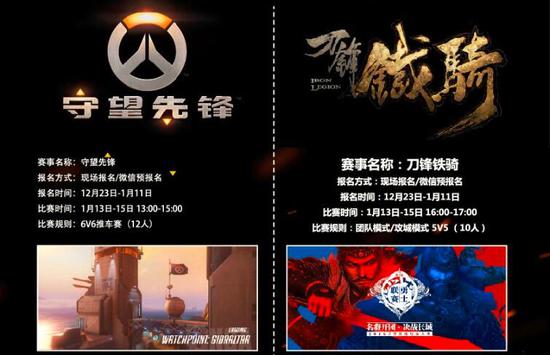 本次CEC2017大融城全民水友赛以暴雪《守望先锋》、腾讯《刀锋铁骑》为主要比赛项目。在本次水友赛期间,守望先锋知名战队TREE9和女子战队KA也会来到现场为大家带来精彩的表演赛。而每个到场的玩家均可自由参与现场比赛,挑战获胜的玩家还能获得官方正版周边哟!有基友的拉上基友,没基友的官方亲自帮你找基友!