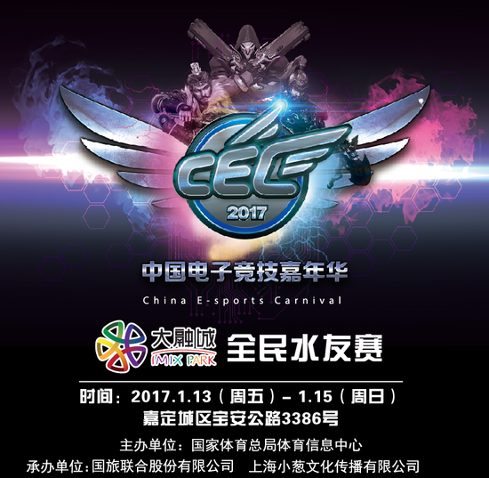 伴着元旦节的欢歌笑语结束,2016已经正式离我们而去,2017的脚步已经正式开启,而2017年的CEC同样精彩!在这新年开始之际,CEC2017首场水友赛即将于1月13日在上海嘉定大融城拉开帷幕。职业战队、女团表演、宅舞秀、Coser、正版公仔,1月13日,嘉定大融城给你一个不一样的电竞春节祝福!