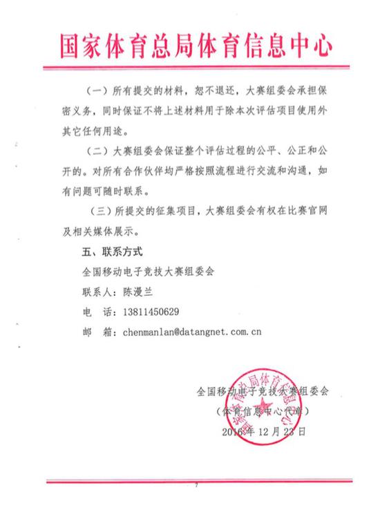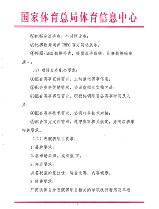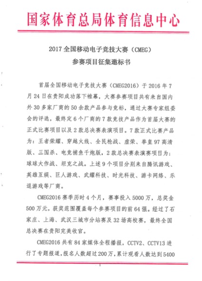 国家体育总局信息中心CMEG参赛项目征集邀标书全文如下: