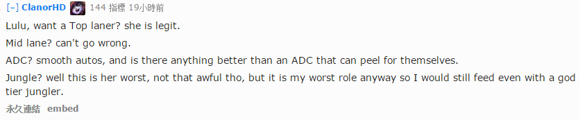 - 提莫可以担任:“上单,打野,中单,ADC,辅助,AP,AD,坦克,激怒队友,激怒对手,送头贼快(W)”的各种角色