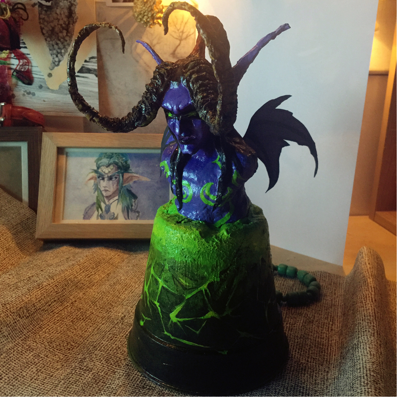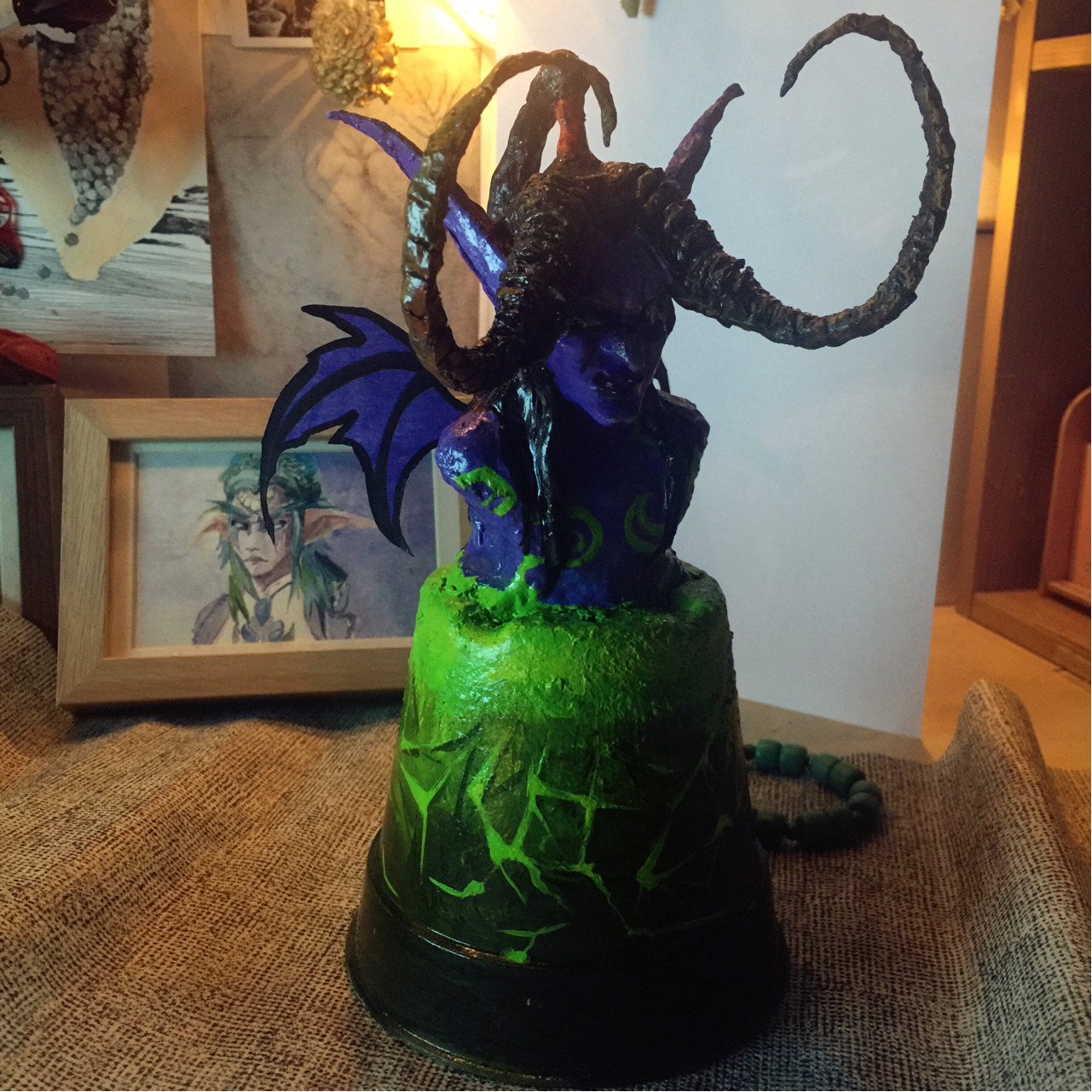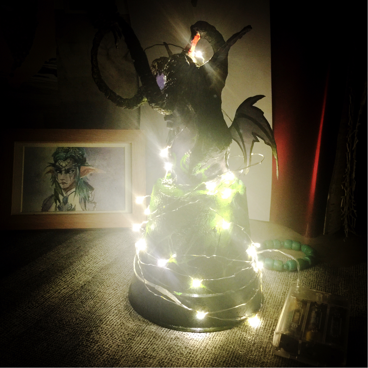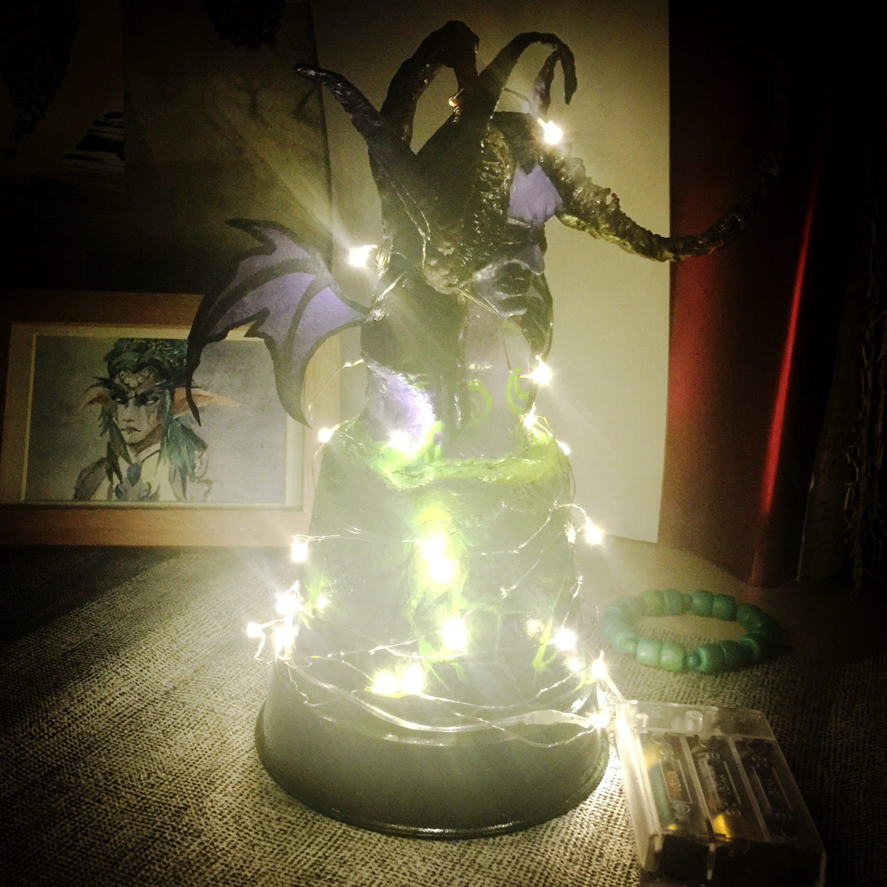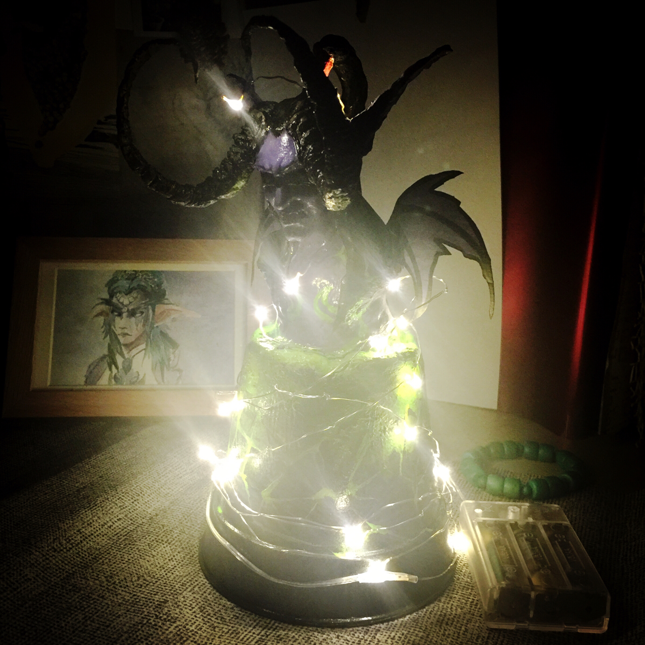 其实很不喜欢做泥塑……但又买不起手办……给伊利丹大人缠一圈小灯吧……变成伊利丹圣诞树!