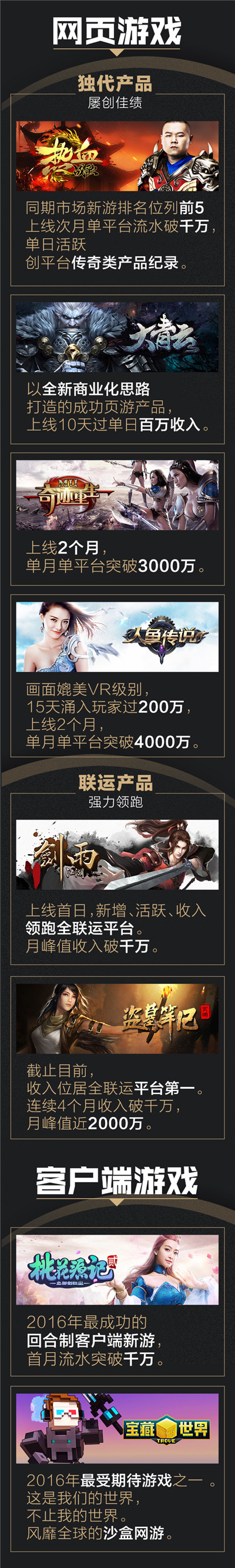 如今的页游市场,不管从类型还是玩法上都在从同一化向差异化发展,在发展过程中有一点毋庸置疑,高成本制作、长研发周期的精品“端游化”游戏,在任何终端、任何技术平台上都有一席之地。当页游市场经历了大浪淘沙的过程,我们期待更多高品质页游面世。