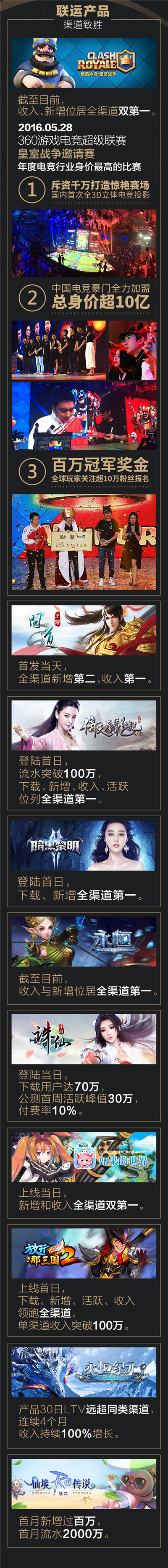 作为一款具有竞技属性的产品,《皇室战争》安卓版在360游戏平台一经上线便得到玩家追捧。不仅产品表现优异,360游戏举办的《皇室战争》联赛更是受到电竞玩家以及游戏圈的强烈关注。此次联赛在全球范围内选拔了64位顶尖CR玩家,同时钟培生的HKesports战队、王思聪的爱基俱乐部,以及若风、Miss、草莓、微笑、Sky、娃娃、JY、DC等多位电竞大咖的强势加盟,都让该联赛成为今年最成功的移动电竞赛事。