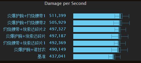 3、为了“无浮冰读不出炎爆党”,特别模拟了护腕+诺甘农的组合,其实收益也不错的,而且没有血量限制,个人认为很适合开荒期使用。